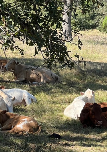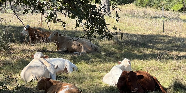 Nestled between two state parks in Lost Pines, Bastrop County, Texas, Cowjoy Farm provides a safe, serene twelve acres for our cows to roam and munch to their heart's delight!